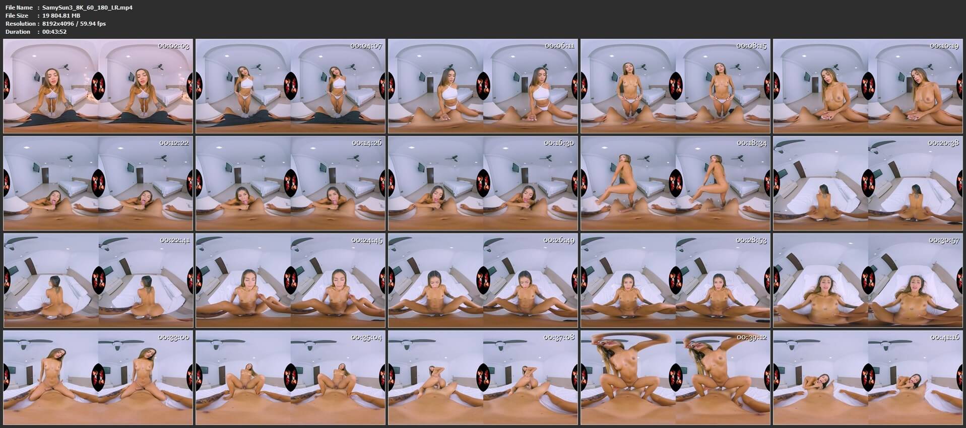 *Updated Corrected Version* Bask in the radiant heat of VR porn with petite Colombian gem Samy Sun in "Sun Is Out". This fully immersive virtual reality porn experience keeps you confined to her cozy, sun-drenched bedroom, soft natural light streaming in, highlighting every detail of her tiny 150 cm frame and natural beauty. Samy lounges playfully on her bed in tiny jean shorts and a fitted white top that clings to her slim, toned body. With a teasing smile and sparkling black eyes, she stands and begins a slow, seductive strip, peeling off the white top to reveal her perky 32C breasts, then shimmying out of the shorts to expose her tight, smooth curves. In stunning 8K VR porn clarity, watch her petite physique move with hypnotic grace as she runs hands over her flat stomach, firm ass, and slender legs, inviting you closer for worship. The action stays intensely intimate on the bed: she pulls you in for deep, eager blowjobs, then mounts for passionate cowgirl where her compact body bounces rhythmically. Switch to doggy for powerful thrusts that showcase her flexibility and tightness, moans echoing in your ears. Build to a climactic finish, pulling out to glaze her toned tummy as this sunny Latina beauty glows in satisfaction. A flawless petite VR porn fantasy: teasing strip, bedroom heat, and pure Colombian charm!